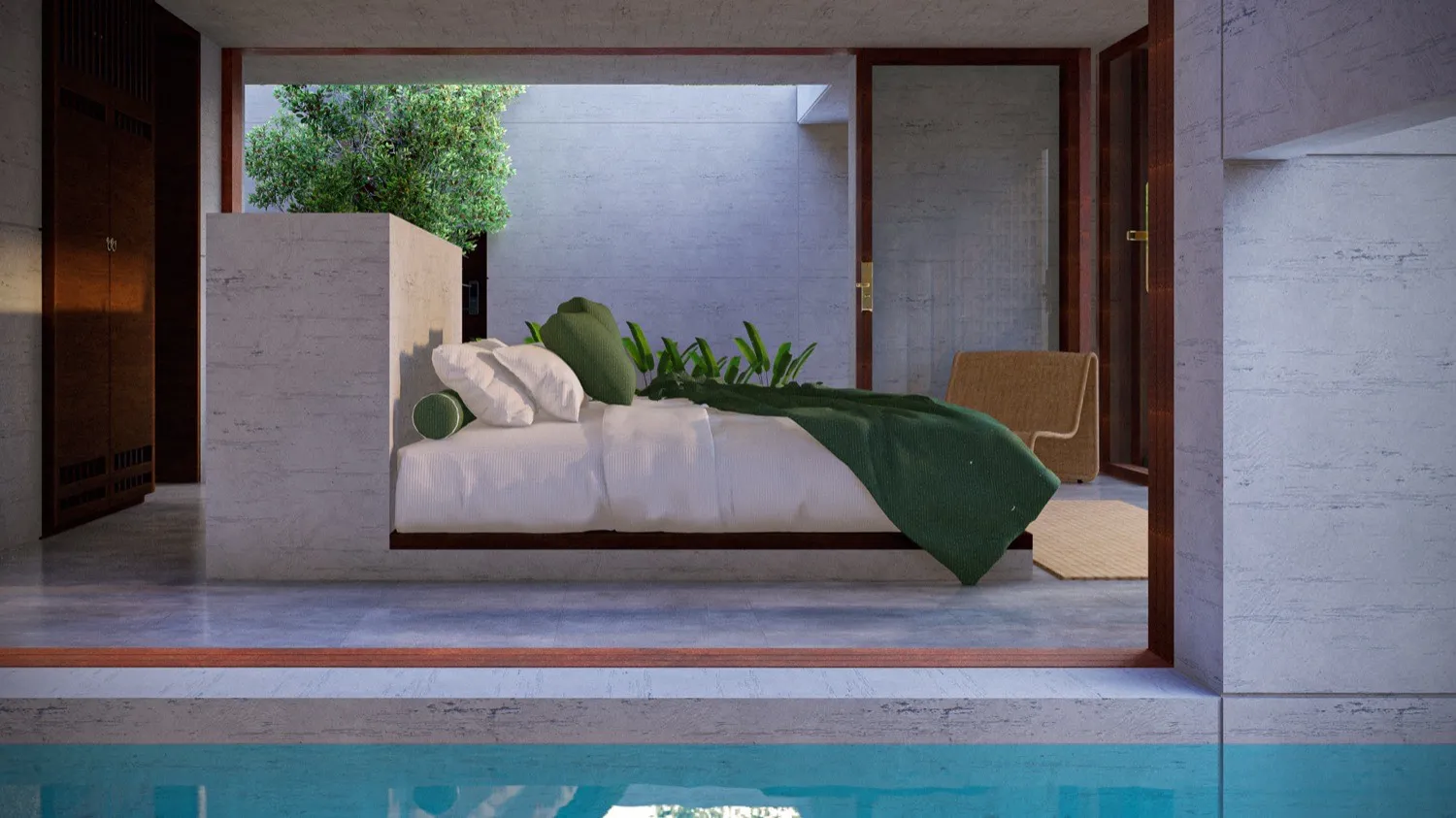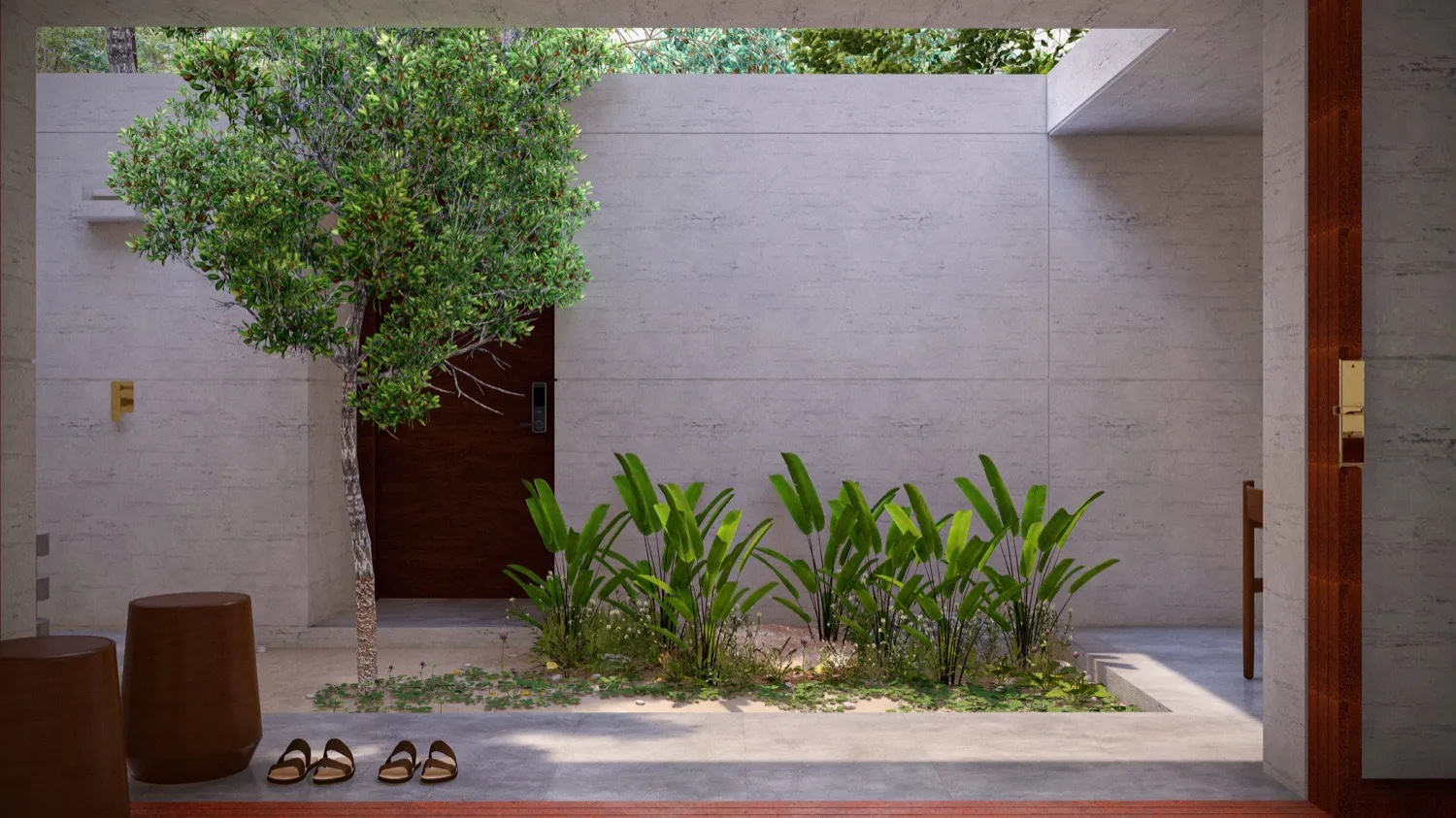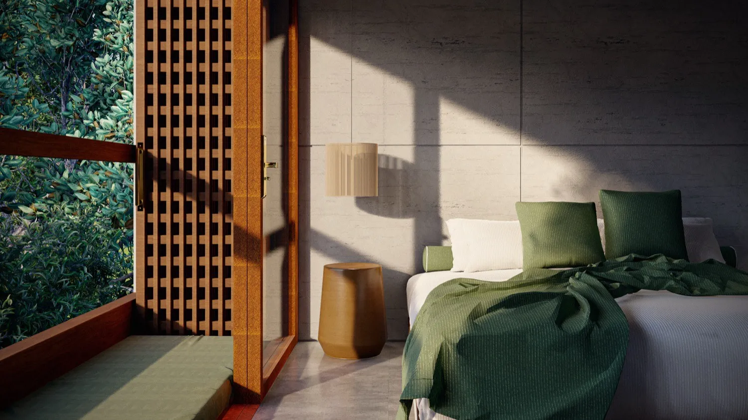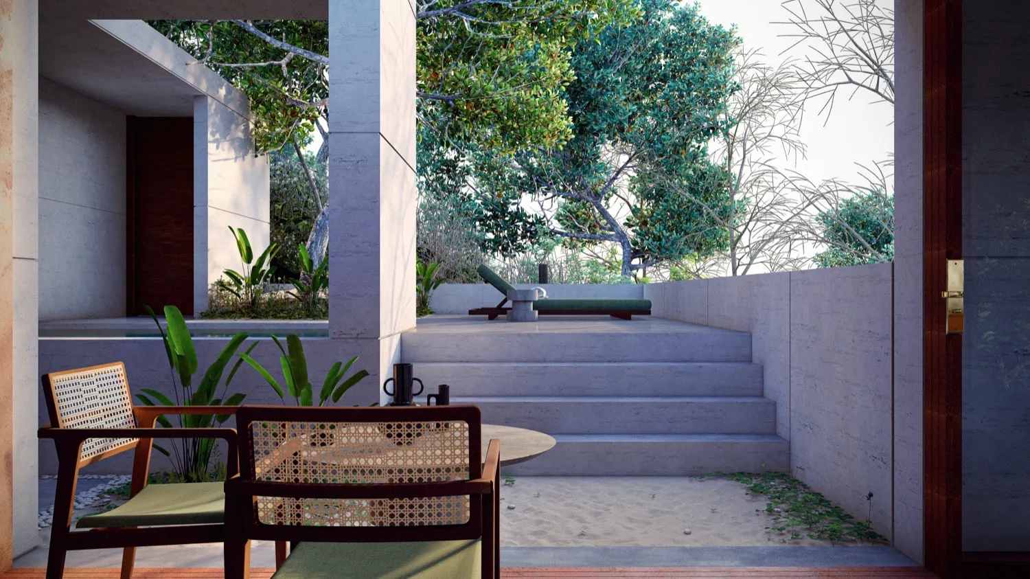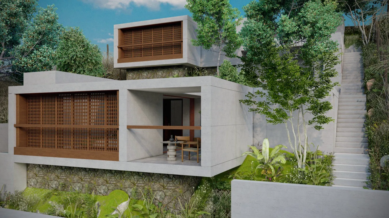 Ubicado en la montaña de El Sunzal, El Salvador, este proyecto de hospitalidad boutique nace sobre un terreno de 600 m2, cuidadosamente intervenido para conservar la esencia del lugar. Los principales árboles del sitio fueron preservados, convirtiéndose en parte fundamental del recorrido y del espíritu introspectivo que guía la experiencia. Aquí, la arquitectura no se impone: se adapta, enmarca y dialoga con el entorno. El diseño responde a una visión clara: crear un refugio atemporal donde el tiempo se detiene y la magia interior florece. Con una estética brutalista delicada, se combinan materiales como el concreto, el mimbre y detalles dorados para generar contraste y profundidad. Cada unidad cuenta con piscina privada, duchas al aire libre y vistas que invitan a la contemplación. Las amenidades —sauna, jardín de contemplación y espacio de yoga— complementan un concepto que busca más que descanso: busca transformación.